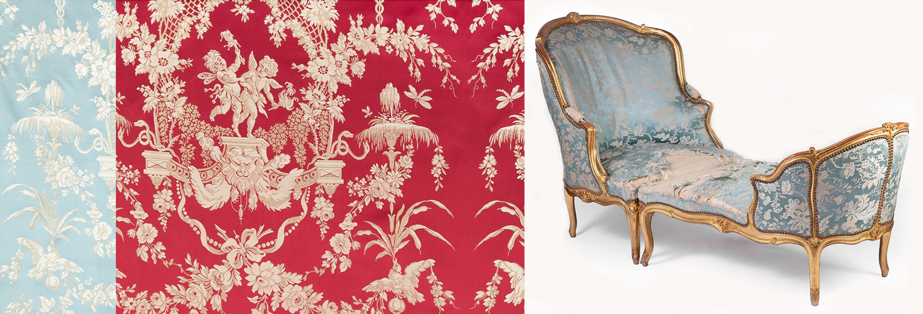 Re-upholstery and beautiful fabric breathe new life into your antique and allow you to be part of the story of its history. We source some of the finest quality fabrics in the world, including hand embroidered silks, bespoke custom panels, linens, velvets and more.