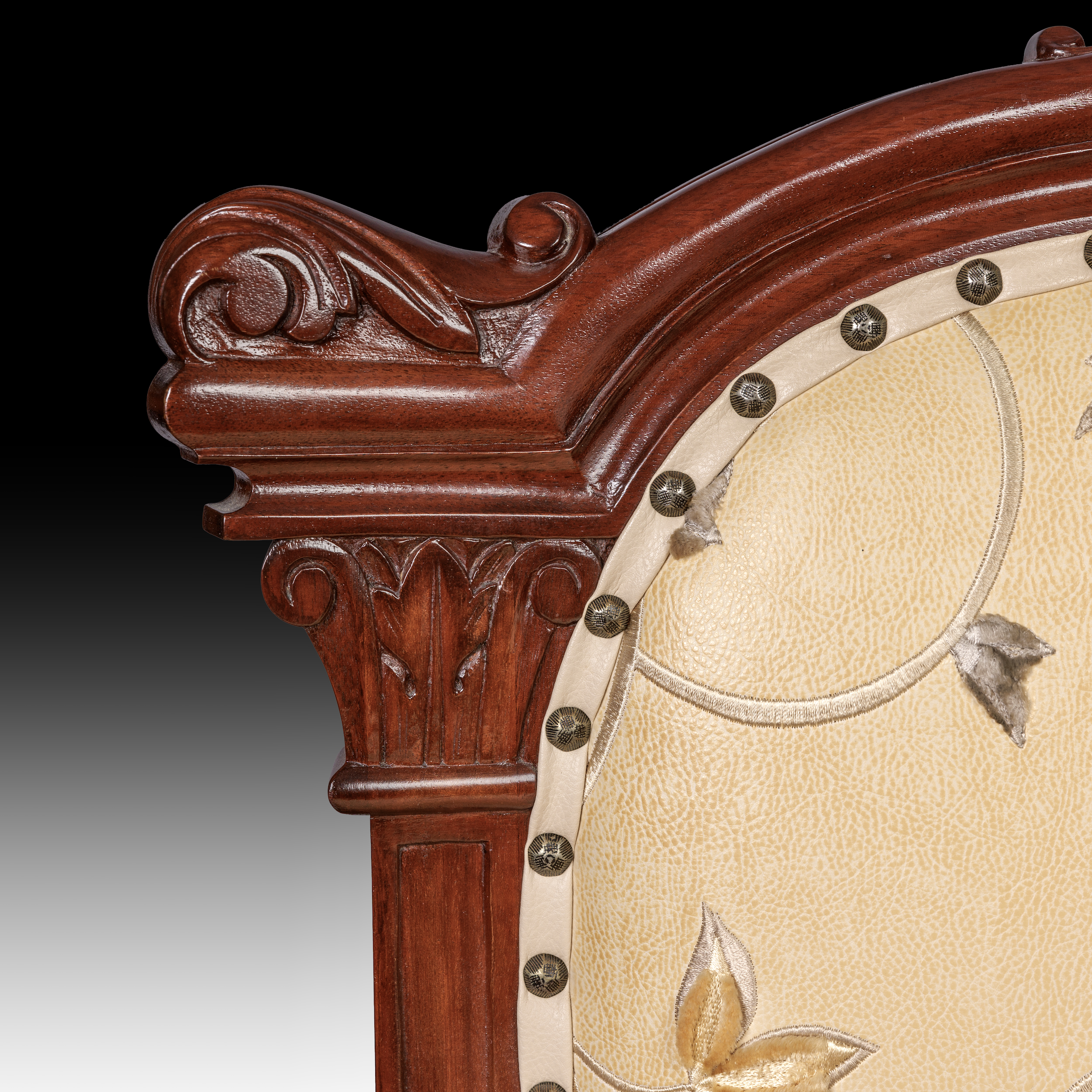 Set of Eight 19th Century English Dining Chairs – Set of fine 19th century English dining chairs, the well carved mahogany backs surround upholstered panel supported on a seat raised on four well carved and moulded legs. In excellent condition.